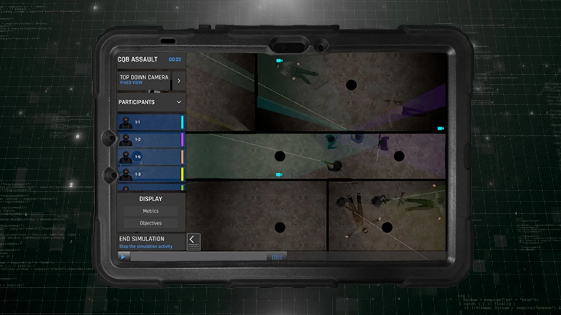 Instructors can recreate complex building layouts and tight spaces, reviewing AAR’s from any angle, EN/FR/CIV POV.
